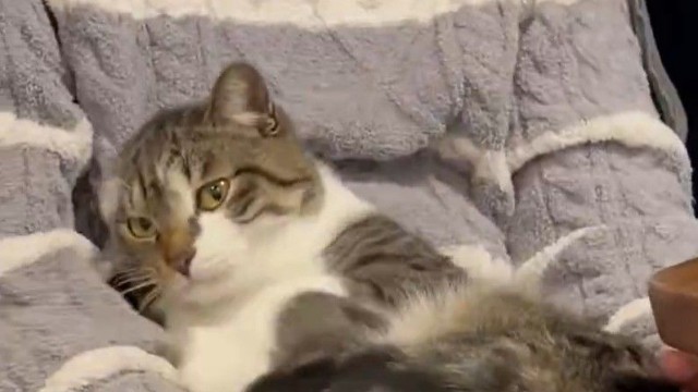 パパのお膝でぬくぬくの元保護猫に「ドヤ顔された」 「国宝級」のお顔に「愛されるために生まれた」
