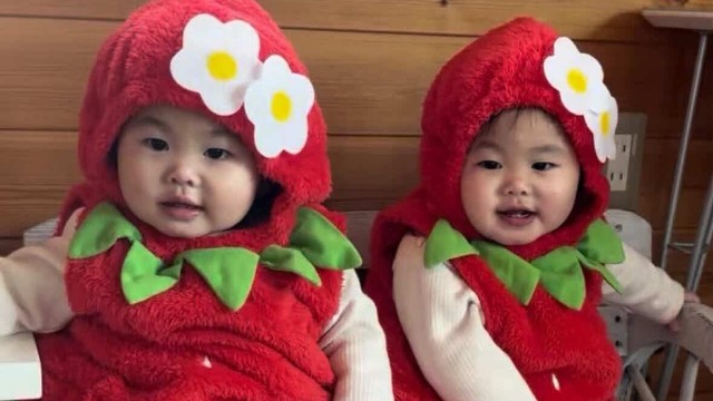 いちご畑をよちよち歩く、小さな双子のいちごちゃん「予約販売してませんか?」「これは可愛い♡完売か…」