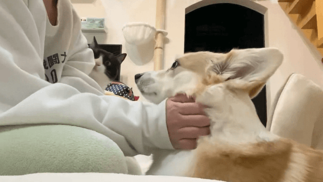 「もっとなでて!」やきもち妬いてる?猫へのなでなでを強引に奪うコーギー 「圧がすごい」「我慢が足らなすぎる」と反響