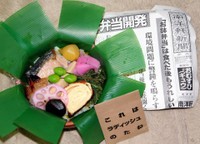 だるまの生産量日本一を誇る群馬県高崎市。そのだるまを容器にした面白い駅弁が、私が子供の頃(40年以上前)からすでに売り出されていて、いつかは食べてみたいなあと思っていた。それがこのたび、同級生が高崎に引っ越したことで偶然にも食べることが出来、うれしいのなんの。手に持った瞬間にずしりとした重量感が伝わり、長い間の夢がかなって感無量だった。