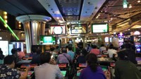 店内を見渡すと15席ほど。壁や台の上には大相撲ののれんや招き猫など和風な小物が飾られていた。チョさんのTシャツの背中側にはヤクルトスワローズのマークがプリントされていた。「日本にはときどき行きますよ」。