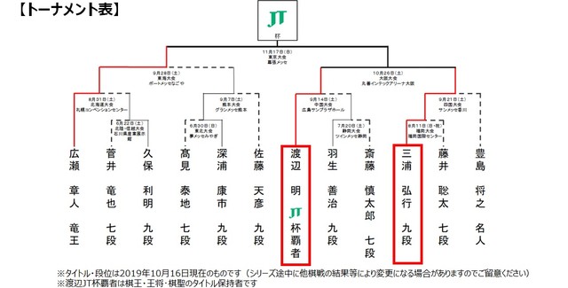 世代間対決と注目される「将棋日本シリーズJTプロ公式戦準決勝第二局、渡辺明JT杯覇者-三浦弘行九段」(主催・公益社団法人 日本将棋連盟、後援・文部科学省、協力・Z会、AbemaTV、協賛・JT、テーブルマーク)の対局が10月26日、大阪市の丸善インテックアリーナ大阪で行われる。