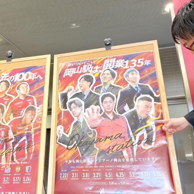 岡山駅「J1ファジ」ポスター、今季も圧巻のクオリティー 注目はルカオの「バモス」ポーズ 注目のブローダーセン役はどこへ?