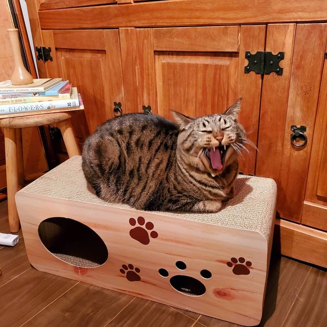 「キジトラのオスだけに、骨太で大きくなりそうだなぁと思いました が、見事6キロ超えのビッグな男になりました。甘えん坊ですがプライドが高いので、他の猫の前で甘える姿は見せたくないらしく 、鳴いて私を呼び、私のベッドまで誘導して、独占甘えん坊タイム を作ります。大きな身体で可愛いやつです」