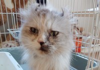 アンちゃんは高齢のため業者が処分しようとしたところ、保護団体に救出された元繁殖猫。施設に来るまでは何年間もずっと狭いケージで暮らしていたため、人との接触や愛情に慣れていなかったことから愛想や表情が乏しく、猫風邪も長年の不衛生な環境が原因だった。