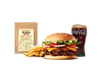 バウワウ・キング・セットの内容は、飼い主用にダブルワッパーチーズ、フレンチフライ(Mサイズ)、ドリンク(Mサイズ)、愛犬用に「ドッグフード工房」の「鶏肉小粒 小麦不使用(無添加)50グラム)です。バーガーキング初の愛犬家のための商品。このセットはデリバリー対応店舗のみの販売となります。離れて暮らす実家に贈ってみてはいかがでしょうか。