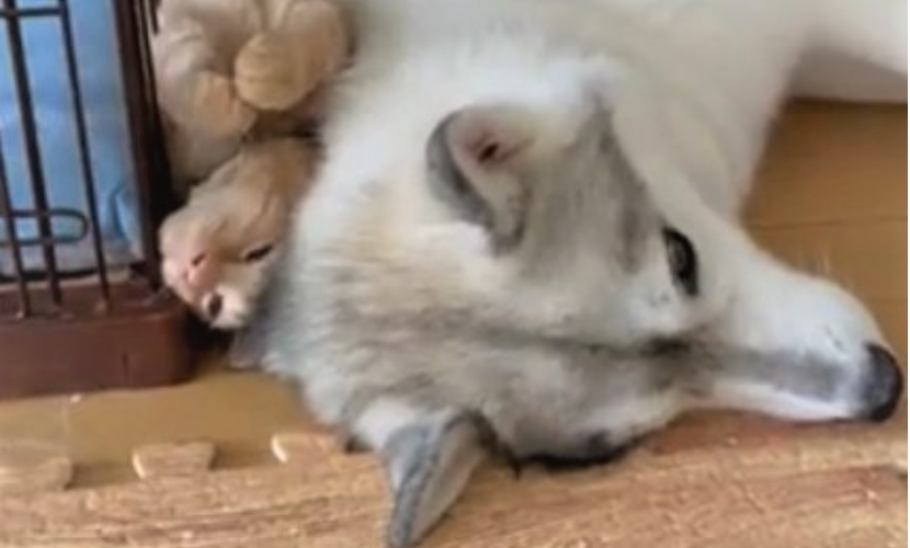 ハスキー犬のハウスだが…実は子猫の寝床だった!?