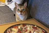 目の前にど~んと登場した巨大なピザに、丸いお目々が更に真ん丸になっている猫ちゃん。「コストコのピザがデカすぎて驚きを隠せない猫」と投稿したのは、京都・西陣で18匹の猫ちゃんたちと暮らす萬野さん(@CatApartmentさん)です。