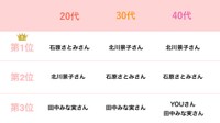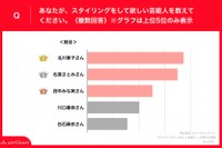 総合3位は「女性らしいファッションをしてみたいとおもったから」(20歳)「ファッションに的確なアドバイスをくれそう」(42歳)などの支持を集めた田中みな実さん。総合2位は石原さとみさん。「キレイで可愛いファッションだから」(42歳)「服装が可愛いと感じる、あまり個性的すぎないから」(39歳)といった声が上がりました。