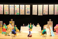 会場に設置された特設の土俵。周りには行司や勝負審判が控え、伝統的な国技の始まりが予想される。ところが呼び出しとともに現れたのは、ゴリラにユニコーン、お姫様…? 手作り紙力士で競う「巨大紙相撲 さとのね場所」が兵庫県三田市総合文化センター・郷の音ホール(天神1)で開かれた。ただの遊びと見くびってはいけない。笑いあり涙あり、本物の相撲さながらの本気のぶつかり合いが繰り広げられたのである!