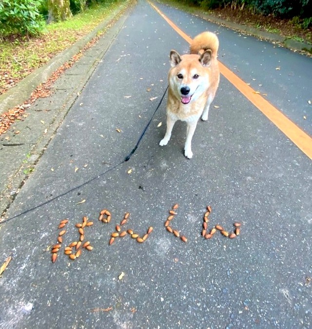 【写真】散歩で四葉のクローバー見つけた!笑顔が可愛い柴犬さん