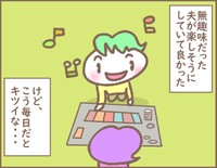 「多少はあってもいいけど、共有の場所に侵食してきたのがいや。やっていないものは処分してほしい」と、Sさんは私に愚痴をこぼしてきました。しかし、交際中から無趣味だった夫が楽しそうにボードゲームをする姿を見ると「私が我慢すればいいのかな…」と思い、不満を飲みこんでしまいます。