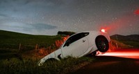 場所は北海道の中標津(なかしべつ)、開陽台(かいようだい)付近の一般道になります。夕暮れ時で天気は良かったのですが、強風で地面のパウダー状の雪が舞い上がり、視界を覆った状況でした。2月15日、気温はマイナス10度ほどでした。