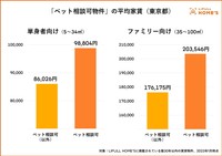 一方、ファミリー向け(35~100平方メートル)では、ペット相談可以外の平均家賃が17万6175円に対して、ペット相談可物件は20万3546円と、こちらも2万7371円高くなっていたそうです。