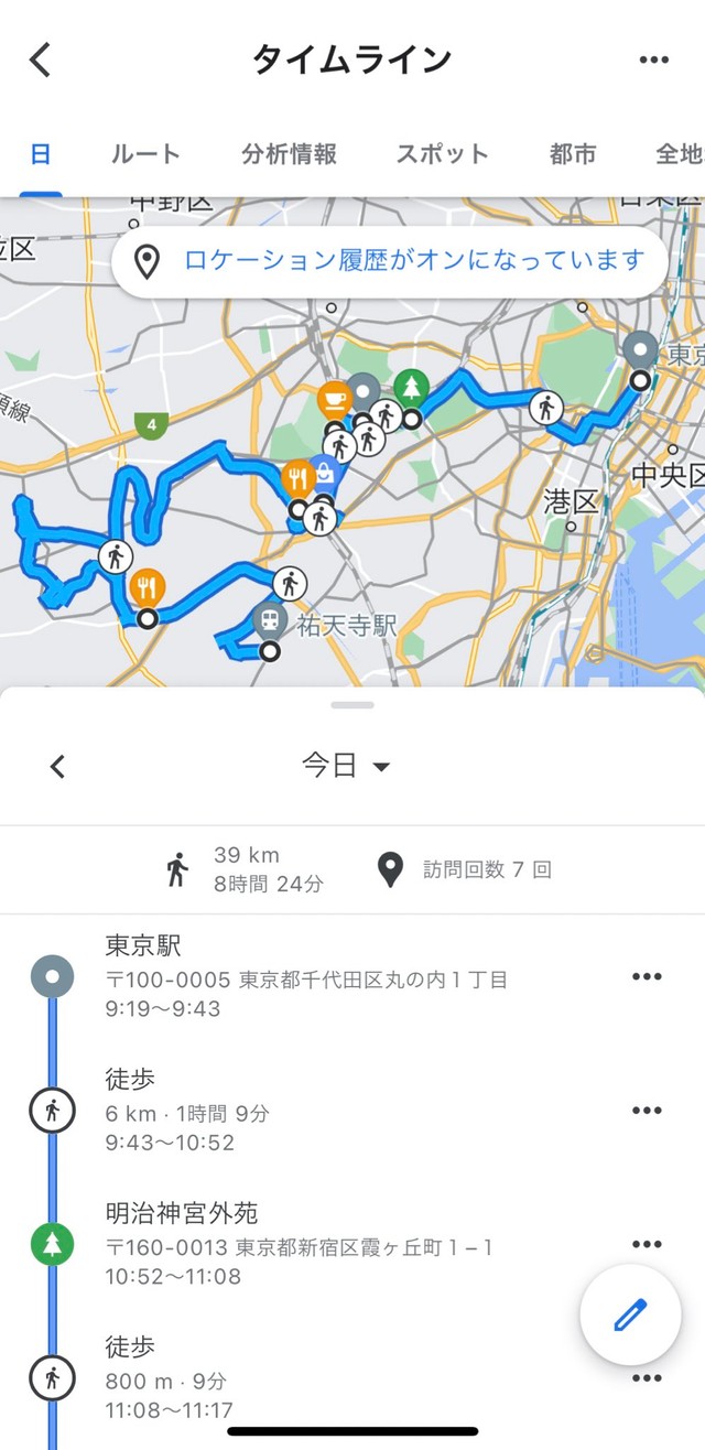 えむ職ちゃんさん達は午前9時半に千代田区の東京駅を出発し、国会議事堂、明治神宮野球場、竹下通り、渋谷109などの名所を訪問。途中、世田谷区内をぐるぐる彷徨ったり友人が足の痛みで離脱するというトラブルに見舞われながらも予定以上に歩いてしまい、午後9時過ぎ、目黒区の東急祐天寺駅に到達し、ほぼ12時間の徒歩チャレンジを終えたのだった。