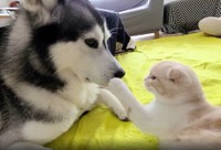 「ケンカしてると思って助けにきた」とTwitterに投稿された動画が話題です。そこには仰向けになった猫と、上から覆い被さるようになったトイプードル、そして猫を助けに来たハスキー犬が写っていました。えっ!?これってケンカなのでしょうか。