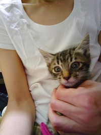 「ブレリアは保護した日はめちゃくちゃ威嚇しまくってきて手がつけられませんでした。一晩ソレアと一緒にいたからか、翌日にはすんなり抱っこすることができました。でも、母猫と突然離されたショックなのか、全くごはんも受け付けず、無理矢理高カロリーのミルクを飲ませるなどしました」