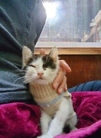 ソレアちゃんは保護当時は元気だったが、次第に猫風邪が悪化して食欲もなくなった。Nさんはカイロで温めたり、目薬をさしたりして対処した。少しでも食べてもらおうと必死に強制給餌もしたそうだ。ソレアちゃんを保護してから10日後にブレリアちゃんも保護したが、ブレリアちゃんもひどい猫風邪をひいていた。
