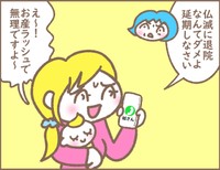 しかし、A美さんは産後母子ともに健康で、入院を伸ばす理由は何1つありません。しかも、たまたま出産が重なり個室に簡易ベッドを置いて相部屋にするほどの混雑ぶり。迷信を理由に入院を引き延ばしたいと言えるはずもなく、A美さんは予定通り退院しました。すると、初曽孫を見に来た祖母から「赤ちゃんやA美に何かあったらどうするの!?」と説教されてしまいます。産後で心身疲弊状態のA美さんはうんざり。「くだらない迷信を押し付けないでほしい…」と思ってしまいました。
