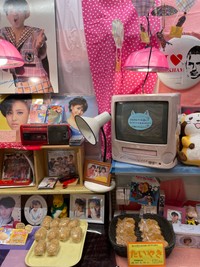 「スタミナをつけろ!イスで殴られても大丈夫だ!」と書かれた謎の手書きポップ、ビニールを貼りあわせて作った電話ボックスのオブジェ、往年の横綱・北の湖関の写真、松田聖子やチェッカーズのグッズ……