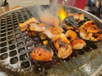 甘辛いタレにからめて食べるホルモンはお酒飲にもご飯にも合う絶妙な塩梅。順序は逆になってしまったが、続けていただいたねぎタンやタン、ハラミ、サガリを厚さ約2センチ、1皿200gにカットした「厚切り3兄弟」もとっても美味しい、あっという間にお腹いっぱいになってしまった。