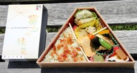 岡山と出雲市を結ぶ特急やくもに使用された旧国鉄型の振り子式特急381系が定期運行を終えた。それに切り替わる273系が運転開始されたのを記念して5月4日から発売されたのが特製やくも弁当だ。掛け紙には雄大な夏の大山をバックに新しい赤茶色の車両が写っている。やくもの全停車駅が地図で記されている上に、中央上部にトロリ線の断面図が透かしでささやかにプリントされていて、我々鉄道ファンなら見た瞬間に購入意欲の湧く駅弁だ。さらに写真をよく見ると右側にちょこんとサギらしい鳥が写り込んでいて、古き良き時代の、のんびりとした日本の風景描写にほほえましくなった。瀬戸内側と日本海側を結ぶ特急だけに、中身も山陽と山陰の食材がふんだんに使われ、容器には経木が採用してあるので駅弁ファンにとっては最高にうれしい演出だ。