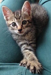 「2023年9月、友人の家の庭で4匹の子猫生み落とされてるのを友人が見つけて保護しました。ところが、2匹は亡くなってしまって……。友人と1匹ずつお迎えすることにして、我が家にやって来たのがまつです」