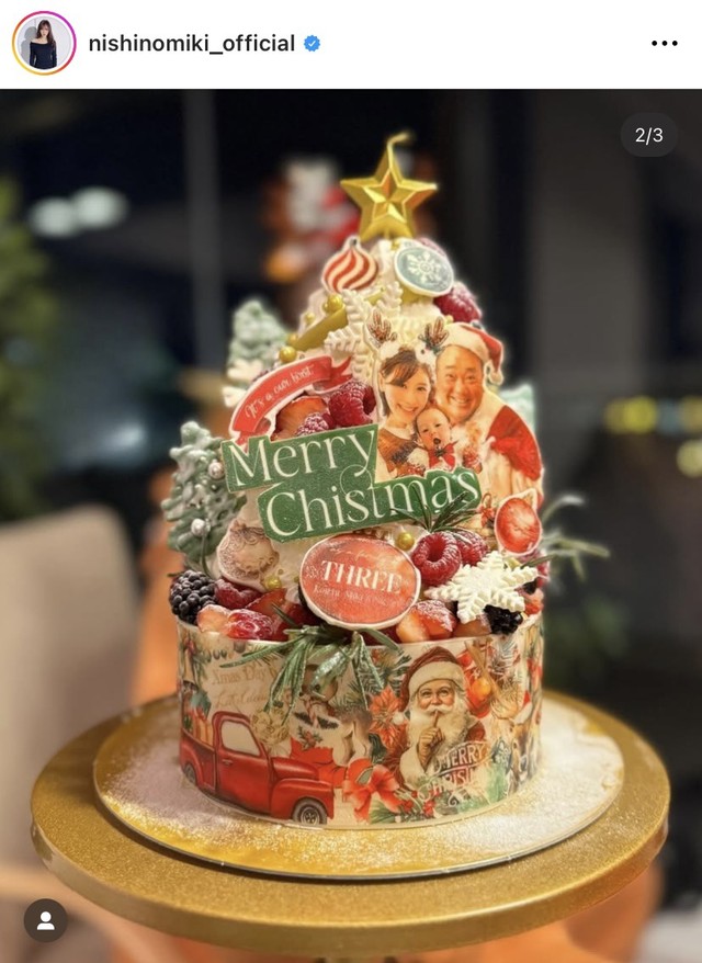 西野未姫、夫・山本圭壱と愛娘との3ショットを公開 豪華なクリスマスケーキでサプライズ「雑誌の1ページみたい」