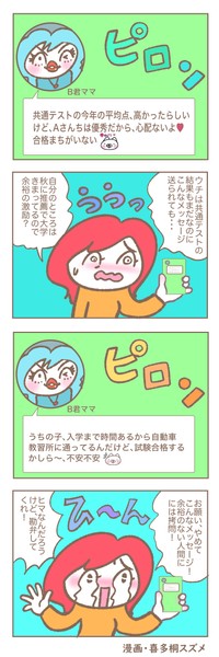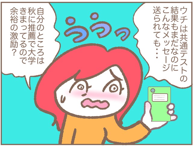 しかも、彼女からは「校内のみんなの結果が楽しみ!」「みんな希望の大学に進学できますように!」といった、まるで“高みの見物”かのようなメッセージも続々届きます。そんなの余計なプレッシャーがかかるだけです。