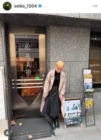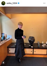 この日は、「最近、黒が好きです。綺麗もかっこいいも 遊び心もある 黒のミリタリーなサテンスカート」と綴り、黒のハイネックのニットに、サテンスカート、ブーツを合わせたコーディネートを披露。金髪ヘアが差し色となっている。そして、誠子さんは「存在感と奥ゆかしさがある人になりたいです」とまとめた。