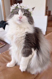 「かまってちゃんの甘えん坊です。気に入っている人の膝の上にすぐ乗ったり、ソファで横になってスマホをいじっていると、スマホと顔の間に入ってきて『スマホよりぼくをかまって〜〜!』とアピール。寝るときも、よく顔の横の枕の上で一緒に寝てくれます。お出かけ中や外では静かにしているので、賢くておりこうさんでもありますね」