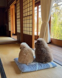 アカウントタイムラインには同居犬さんである、ちろるちゃんと並んで座るうしろ姿など、しえるちゃんの可愛らしい姿が日々投稿されています。