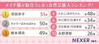 「メイド服が似合うと思う女性芸能人」と聞かれたら、あなたは誰を思い浮かべますか? 秋葉原のメイドカフェ「MAID MADE」と株式会社NEXERが行った調査によって、「メイド服が似合う芸能人ランキング」が明らかになりました。果たして1位に選ばれたのは誰だったのでしょうか。調査は、全国の男女1000人を対象として、2025年4月7日〜4月22日の期間にインターネット上で実施されました。
