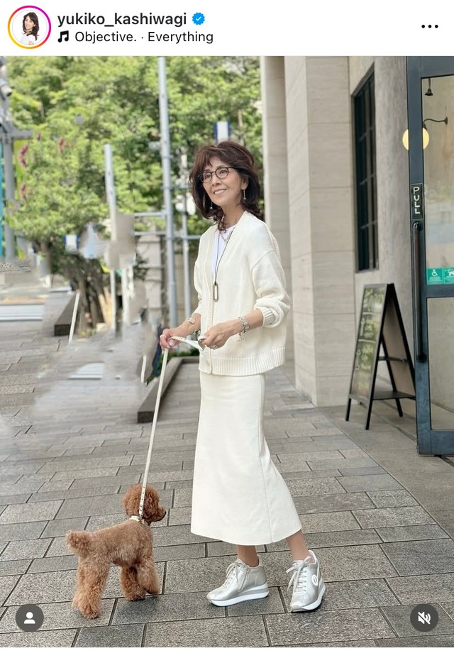 【写真】かわいらしい愛犬?を抱き上げる柏木由紀子さん
