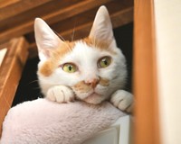 「キョトン顔かわいいですね。うちの子も押し入れを寝床にしています。ペット用ベッドには見向きもせず」