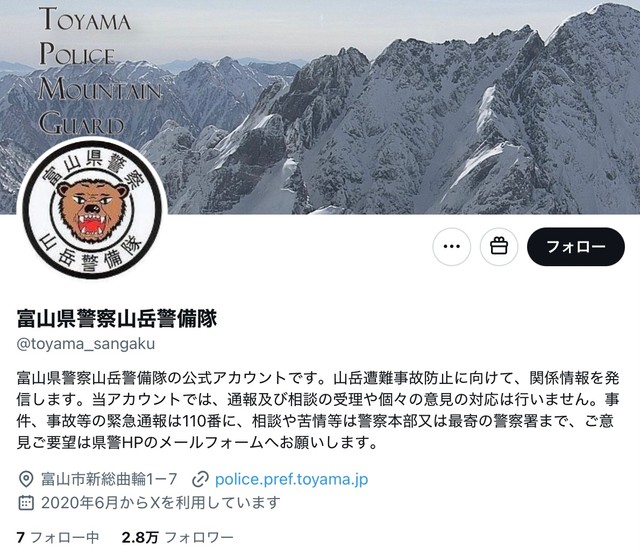 富山県警察山岳警備隊の公式Xのアカウント(@toyama_sangaku)は8月14日午前、「熊出没注意! 本日早朝から、みくりが池周辺にて熊が1頭出没しています。見かけても近付いたり、刺激しないよう注意してください」と投稿。