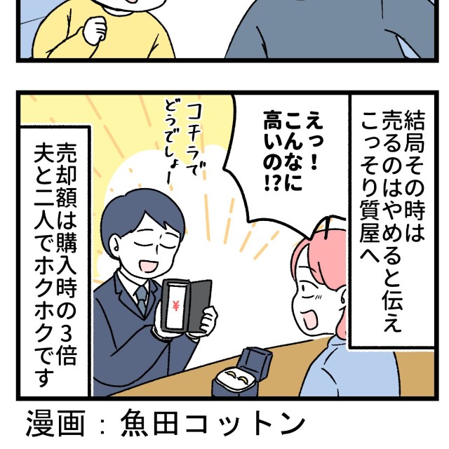 私は結婚以来、ずっと指輪をつけていますが、妻はつけていないかもしれません。もし勝手に売っていたら正直ショックです。ただ、思い出は心に残るもの。形として残らなくても価値が失われるわけではないと思っています。