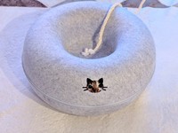 「つくねは、少し神経質なところがあります。地震をはじめ、びっくりすることがあると自分の毛をむしってしまうんです。そんなときは、一緒に遊ぶ時間を増やしたり、新しいおもちゃで気をまぎらわせたり…ドーナツ型のベッドを買ったら、毛をむしるのを忘れるくらいインパクトがあったようで、『いい買い物をしたな』と思っています」
