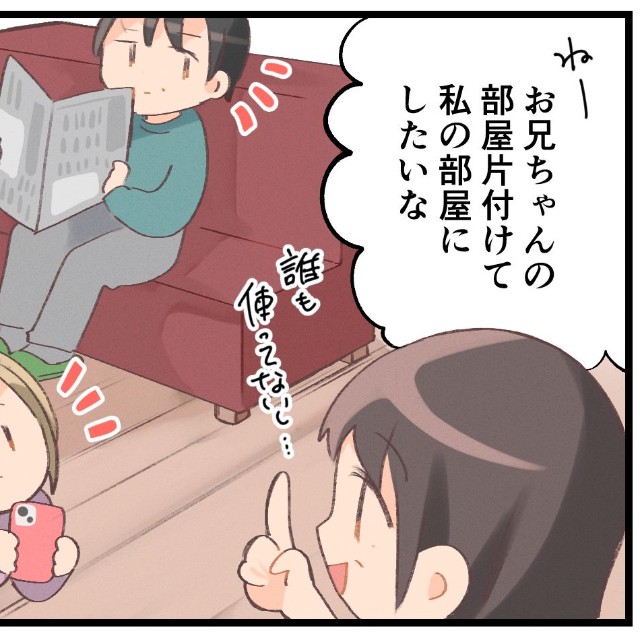 善は急げと長男に「この部屋片づけたいんだけど、捨てちゃダメなものあれば送るから教えて!」とLINEを送り、自分の部屋のクローゼットに入りきらない季節外れの服を兄の部屋に置いていた長女にも「片づけて!」と声をかけたのですが…。