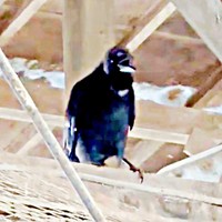 そんなコメントとともに公開された28秒ほどの動画には、牛舎の天井近く、屋根の梁を支える太い垂直の支柱の上にとまるカラスの姿が映っています。