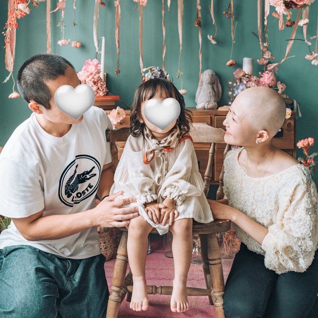 【写真】現在も乳がんの治療を続けるかなさんと家族