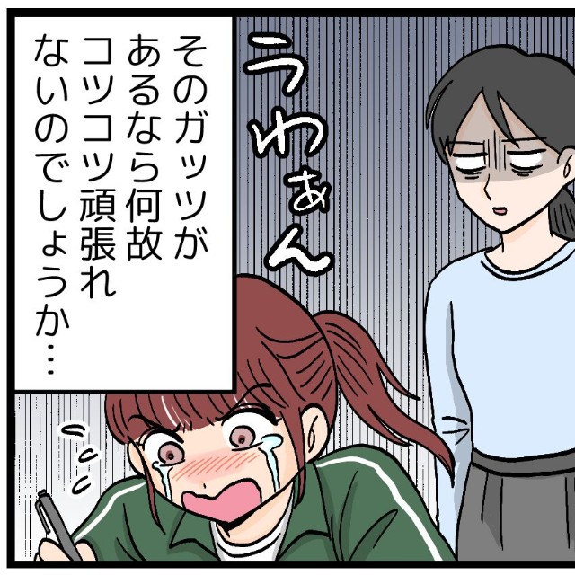 気づけば提出期限の3日前。さすがのY葉さんもようやくエンジンがかかりノートに手をつけますが、一朝一夕で終わる量ではない。徐々に泣きが入り始めます。ノートに染みを作りながら、毎夜机に向かって、ついに提出日前日…