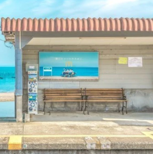 「日本一海に近い駅」に窓が? よく見ると…マクドナルドの広告だった「すごい!狙ってやったのかな」