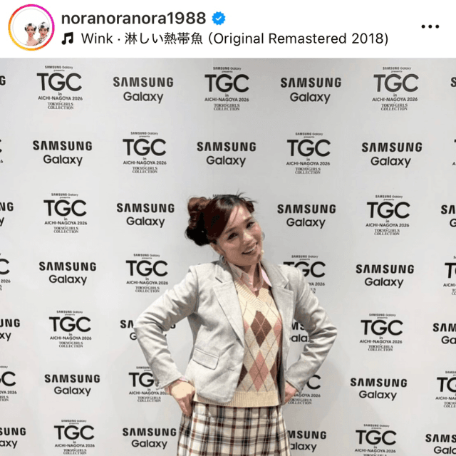 公開された写真は、15日に愛知・IGアリーナで開催された「Samsung Galaxy presents TGC in あいち・なごや 2026 by TOKYO GIRLS COLLECTION」に出演した際の帰りの新幹線で撮影されたもので、ランウェイ用に鮮やかなアイメイクやストーンを散りばめた華やかで可愛らしいメイクから、髪があらゆる方向に乱れ、メイクオフしたすっぴん状態で真顔でカメラに視線を向ける仕事終わりの「ビフォーアフター」のギャップのある姿が見られます。