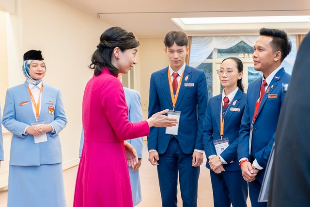 【写真】佳子さま ピンクのワンピで東南アジアの若者らと笑顔