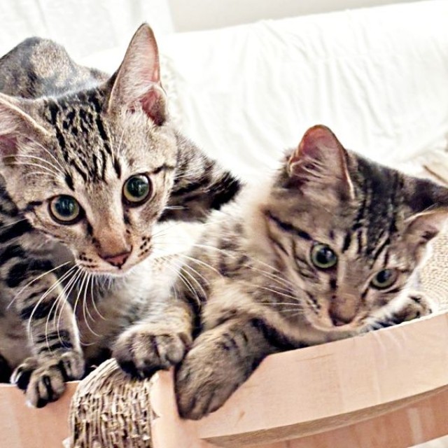 「兄のひらりはとにかくやんちゃな活動派。常に動いていて、キャットタワーのアクリル透明板に気づかず頭をぶつけたり、立ち入り禁止の障害物も気にせず突っ込んだり。一方、妹のふわりはおっとりした賢者タイプです。透明板は踏まないし、障害物も無理には乗り越えません。ひらりが突っ込んで壊した後に悠々と侵入する計算高さがあるんです(笑)」