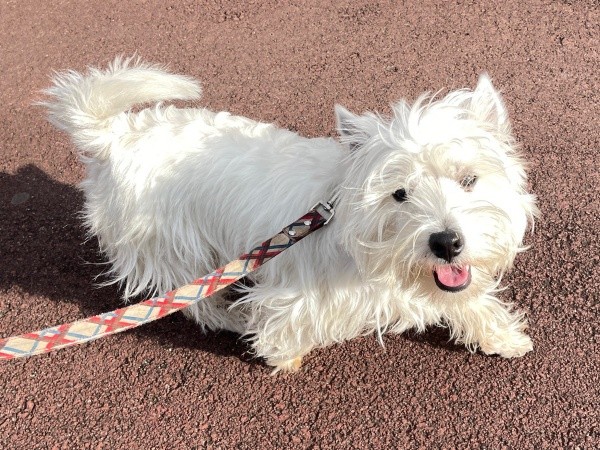 【写真】飼い主さんをチラッ♡ 散歩中の目配りが愛おしい