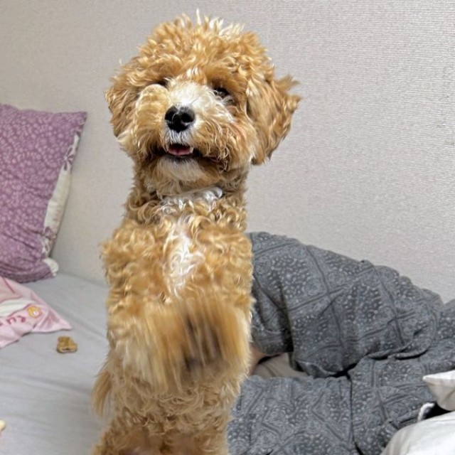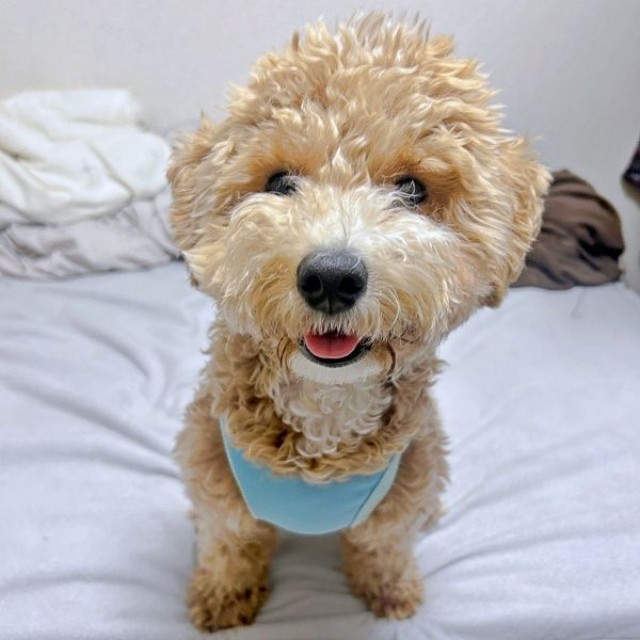 「最近は、お散歩が上手になりました! 以前は常にリードが張っている状態だったのですが、だいぶ慣れて余裕が出てきたのかご機嫌に歩いています。ただ、はまだまだパピーらしく、やんちゃで暴れん坊です」