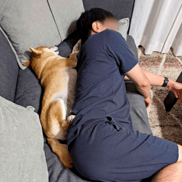 飼い主さんの膝の上で仰向けになり、潤んだ瞳をキラキラさせてじーっと見つめる柴犬の「すず」ちゃん(7歳・女の子)。今にも「私にもひと口……」と言いたげなこの状況について、入間川いぬ散歩会さん(@IrumaRiverSanpo)にお話を伺いました。