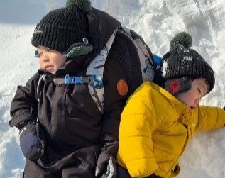 雪の日に、2歳&4歳の兄弟がうとうと……幼稚園の送迎姿に「雪国の特権!」「可愛すぎる♡」「ママさん、お疲れ様ですw」